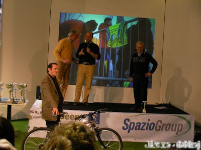 Des grandes tables avec un très beau buffet nous attend avant la remise des prix. Puis le film officiel de la course qui se trouve en ligne sur Internet en Haute définition (http://www.vieweb.it/Recordando/) est présenté en arrière plan: